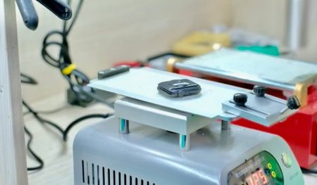 - После того, как экран отклеился от корпуса, еще раз прогреваем часы на сепараторе, чтобы экран без труда отошел.