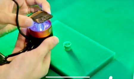 - Удаляем клей при помощи машинки, которая наматывает его на стержень.
