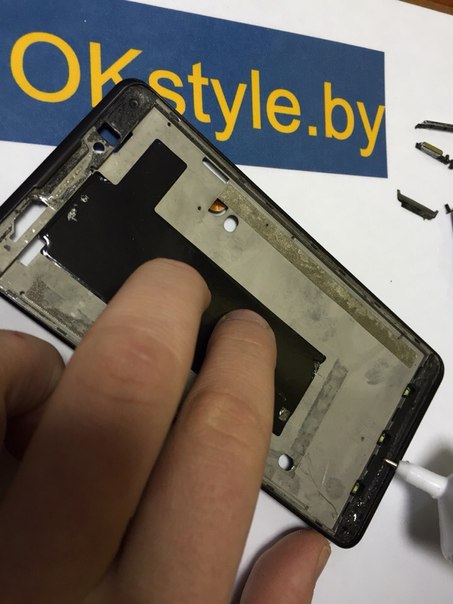 Для того, что бы дисплей держался не хуже старого, мы используем специальный клей-гель. Промазываем корпус по краям и внутри и ждем минуту, чтобы гель подсох.